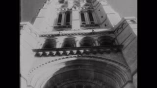 Yesterday’s Newsreel was a series of films produced by the Ziv TV network using the archive of the General News Co. newsreels and modern narration. Topics covered include fashion of the day, news from war fronts as well as advances in industry. This episode begins with a feature on millionarie John D. Rockefeller in a segment called ‘Sourcing for Oil’. Rockefeller and his family controlled nearly almost all oil production, processing and marketing in the US beginning in 1863. Oil rigs open the scene (1:13). Early automobiles run down a dirt road (1:18). Rockefeller appears in his 80’s. His sprawling Florida home; known as the Casements Mansion in Ormond Beach, stands on the Halifax River (1:37). Rockefeller plays golf with a longtime friend Dr. Cornelius Wilkin (2:02). Workers tap the earth for oil (1:01). Adelbert Ames (2:10); a 92 year old survivor from the Civil War, was Rockefeller’s neighbor. The oil giant swings a club; his start in the industry (2:28) and philanthropic endeavors are discussed. John D. Rockefeller Jr. toes down Capitol steps during the investigation of the Teapot Dome scandal in February of 1928 (2:43). During the scandal; petroleum deposits were leased to private companies without competitive bidding. Rockefeller tours Williamsburg, Virginia; newly purchased lands (3:06). Rockefeller sank 5 million into restoration (3:08). He stands amid the site where Lafayette and Washington held a fateful meeting near the college presidents house (3:12). W. A. R. Goodwin (3:23) encouraged the oil monarch to help preserve Williamsburg. Riverside Church’s gothic architecture is captured in New York (3:43). He and his family step from the church; black top hats and police escorts (3:52). Rockefeller Plaza; also known as the Comcast Building was completed in 1933 at 66 stories high (3:59). In 1947, Nelson Rockefeller accepts a check for 8 million (4:12). The check is pictured at (4:14). The strange stringed zither instrument gets a feature in 1936 Philadelphia (4:44). Instruments are zoomed in on (4:51); players pluck while others strum a bow (4:51). It was a popular instrument of the Swiss (5:04). Celebrity personalities in the 1920s begins with the coach of University of Maryland Wolverines; Fielding Yost (5:24). Yost later took a desk job as Director of Athletics (5:39) another highly prominent position. Alva Belmont (5:49) follows, a well-known women’s suffragette (5:47). Alva is Oliver hazard Perry Belmont’s wife. A cowboy called Edward Gibson (6:06) trots by under a straw hat. He played the lively screen character ‘Hoot Gibson’ (6:15). Floods ravage streets of Cincinnati, Ohio in 1913 (6:51). Rivers touch tips of roofs on March 27th (7:00). Fleeing civilians cart belongings (7:08). Buildings appear in ruins (7:24). In Dayton, a tributary floods (7:28). Militia fire at civilians looting through the rubble (7:32). 1928 ‘Measure for Love’ (7:47) presets Dr. Marsons’ strange love meter (7:56) at Colombia University. A machine tracks the girls; blondes or brunettes, reaction to love scenes in a film (8:15). Aviation highlights (8:30) in 1930 include a Crater Lake crossing (8:39). The plane zooms around Wizard Island (9:11). Fashions of 1919 (9:35) show a French woman readying herself in the mirror (9:54) flapping a fashionable hand fan. She sets aside her needle point bag (10:13). Two girls show off head wraps, skirts and long hoes on the beach (10:25). Sports highlights of 1916 to 1932 (10:51) feature a NYC police cop (11:00) Captain Matt McGrath (11:01). He tosses a hammer throw (11:05). Slow motion footage follows (11:16). A horse race runs down the track at (11:47) the Epsom Downs racecourse (11:49). Horses move for the starting line for the metropolitan handicap (11:54). Horse and jockey take off (11:58). Alacrity takes the win (12:20).
