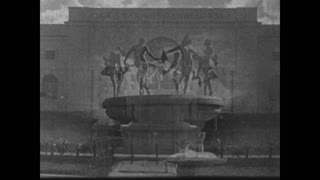 00:00 Main titles. Pedestrians enter the Expo’s grounds (:11). Straw hatted tourists pass the Greyhound tour bus (:15). American flags wave at the Federal Building and Court of States (:24) designed by architects Bennet, Burnham and Holabird. Aerial shots pass over the fairgrounds (:36). An advertisement boasts “Supreme Thrills” on the Skyride (:41). Close shots watch the capsule take riders on a sightseeing joy ride (:47). The Hall of Science appears from the northern approach (:57). It was the predominant note of the Exposition housing exhibits of industries with sections dedicated to biology, chemistry, geology, mathematics and medicine designed by Paul Cret. Stone pillars stand outside the Electrical Group (1:07). The Hall of Social Science (1:24) exhibited a variety of topics including capital redistribution and monetary systems. It connected to the Science Palace via a bridge over the lagoon enabling access from nature to science exhibits. The Golden Pavilion of Jehol (1:35) was a replica of the 18th century Buddhist temple known as the Lama Temple of Jehol (1:38). A strange exhibit featured prematurely born babies put on display at the Live Incubator Babies Show (1:43). Admiral Byrd’s Polar Ship, “The City of New York” appears in the harbor (1:55). A replica of Old Fort Dearborn was put on display (2:02). The stunning Travel and Transport (2:09) building was designed by John Holabitd, Edward Bennett and Hubert Burnham. It featured a “Breathing Dome” that pulsated with changing temperatures. The two-story Chrysler Building (2:14) housed Chryslers, Plymouths, De Soto’s and Fargo’s. The GM building by Lake Michigan (2:19). The Mexican pavilion showcasing various dancers (2:25). The Greyhound bus runs in front of the replica of the Mayan Temple of Uxmal (2:35). Native American Indian villages (2:39); teepees stand in front of the Maya temple. Feather headdress tribe members smack drum skins (2:52). Belgium was represented (3:09) through works by the architect Victor Bourgeois. The Oriental Village (3:26). “The World A Million Years Ago” (3:32) was built by the Sinclair Refinery. Next, a short film released by Kodak CInegraph (3:46) touring Havana via the Cunard Steam Ship Company. The Presidential Palace in Havana (4:01) and aerial shots of the Paseo del Prado (4:20). The Prado heading for the new capital (4:35). Central Park Square (4:48). 1927 Citroen B14’s (5:10) exit an alley. A view peers between columns of the Old Cathedral Plaza (5:29). The Monument to USS Maine (5:40). Dome structures appear in the Parque Rio Cristal (6:23). The courtyard (6:26) of the La Villa Teresa designed by Max Borges (6:33). The Gran Casino Nacional (6:53). Avenue of the Palms on route to the Market Nassau (7:14). Kodak Cinegraph of Granada (7:22) beginning with the Darro River (7:27). Ferdinand II of Aragon and Isabella I of Castile burial site (7:53). The Alhambra (8:05). Narrow cacti lined roads outside the city (8:26). A woman and donkey pass (8:42). A small family feeds neighborhood chickens (8:52). Poor farmers hack at stones to pay off taxes (9:20). Gypsies dance to stringed instruments (9:48). Olive gardens in the Sierra Nevada (10:18).