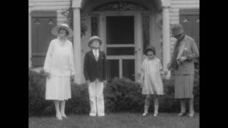 The film opens with three African American children and a Caucasian girl playing over snow crusted ground (:09). The youngest dances the Charleston (:16), trailing behind the group. Shortly after with happy feet she leads (:57); telephone lines and snow mounds dot the background. An older member of the group, their mother or a caregiver, dances solo, sliding on the frozen ground (1:09) and — she’s terrific! Kids clap and smile in unison (1:51). The youngest girl plays with her dolly (2:01). Another shot shows the Caucasian girl dancing on her stoop (2:23), front door and street address in the background. Close shots capture an open mouth smile (3:04). The view runs over neighboring residential homes (3:44). The season changes, youth play in summer suits on the front lawn (3:57). They play in the sprinkler (4:07). Happy shots show one boy with the water sprinkler gushing from atop his head (4:42). The young boy and girl play with army figures on the carpet (4:59). Outside of Victorian style columns, they put on a performance in formal attire (6:21). Older members of the family join the show (6:58). Kids take a dewy bike ride in the rain (7:30). Three adult members of the family sit on a wicker chair together (9:21). A number of guests enter and exit the front door; showing style and dress of the era (10:36). Wide shots show the home’s expanse (11:24). A male figure flips through book pages (11:50). A woman taps on piano keys (12:06) as the film concludes.