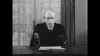03:54 Willkie and Prime Minister Winston Churchill pose for cameras. 04:16 Willkie and Ernest Bevin at the Labor of Ministry, and then to St. Paul’s Cathedral. Willkie meets with soldiers and civilians, shakes hands and fraternizes on the street and in pubs. 04:47 Willkie and others enter a public bomb shelter during an air raid. Inside the shelter he speaks with citizens about the war and pressing issues in England. 05:12 Willkie addresses the press and public, noting how many shelters he’s seen and how strong and resilient the people are. 05:31 A title card notes that England has sent a Cabinet Minister as Ambassador to Washington, DC. 05:40 Lord and Lady Halifax board the fishing steamer Coreopsis as Winston Churchill bids farewell. Halifax transfers at sea to the battleship HMS George V as the ship sails across the Atlantic. 06:30 A welcoming committee aboard President Roosevelt’s yacht greet Lord and Lady Halifax at the Naval Academy dock in Annapolis, Maryland. 06:40 Secretary of the Navy Frank Knox and Secretary of State Cordell Hull in conference with Halifax. 06:52 Lord Halifax address the American public in a recorded message expressing his appreciation for American hospitality. 07:15 A title card announces the National Defense at work. 07:18 The Senate Chamber in the U.S. Capitol Building. Committees discuss Lease Lend bill. Cordell Hull testifies 07:52 Montana senator Burton K. Wheeler speaks in opposition 08:08 Texas Senator Morris Sheppard professes his support of the Lend Lease bill. 08:37 Workers toil in munitions factories, shipyards, launch of the cargo ship SS Cape Alava on August 3, 1940. 08:57 Factory workers assemble Curtiss P-40 Warhawk fighters while other factories produce munitions. 09:11 U.S. Army soldiers in parade dress march. 09:15 Soldier carrying duffle bags board a transport ship, 09:27 National Guardsman assemble and march. 09:32 Civilians line up for induction 09:40 William Knudsen, co-chair of the Office of Production Management, speaks at a conference encouraging increased production for the war effort. 10:03 U.S. Army cadets in parade dress march. 10:17 End